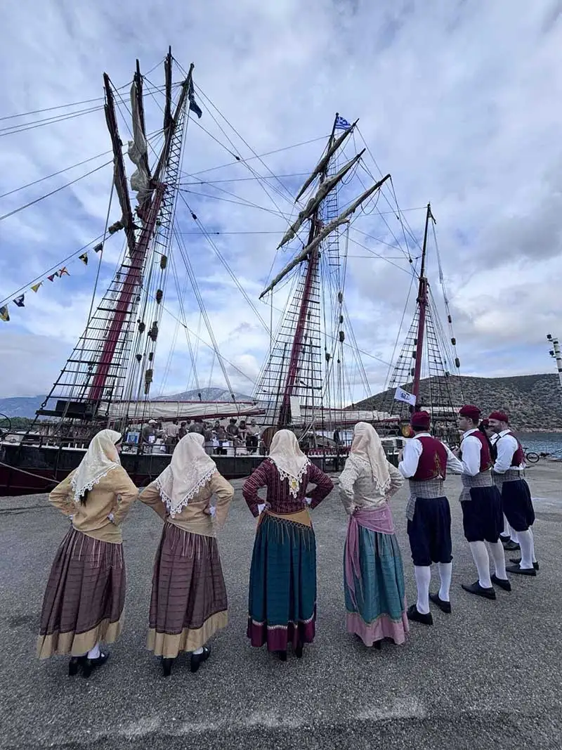 Την εκδήλωση υποδοχής πλαισίωσε με παραδοσιακούς χορούς η Χορευτική Ομάδα του Δήμου Ερμιονίδας, αποδίδοντας φόρο τιμής στην πολιτιστική και ναυτική κληρονομιά του τόπου. Η ατμόσφαιρα ήταν γιορτινή, με κατοίκους και επισκέπτες να συμμετέχουν ενεργά στη γιορτή της θάλασσας και του πολιτισμού.