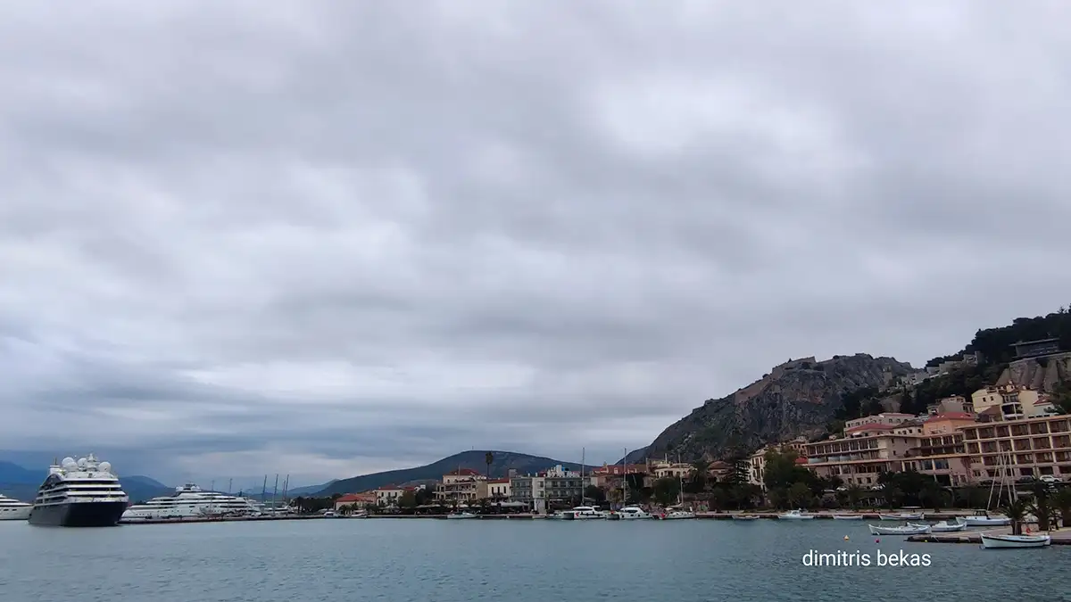 Στο φόντο, το εμβληματικό Μπούρτζι και οι καταπράσινες κορυφές της Αργολίδας, ενώ στο προσκήνιο οι λευκές βάρκες και τα ιστιοπλοϊκά ολοκλήρωναν την ειδυλλιακή εικόνα ενός λιμανιού που συνδυάζει την ιστορία με την κοσμοπολίτικη αύρα.