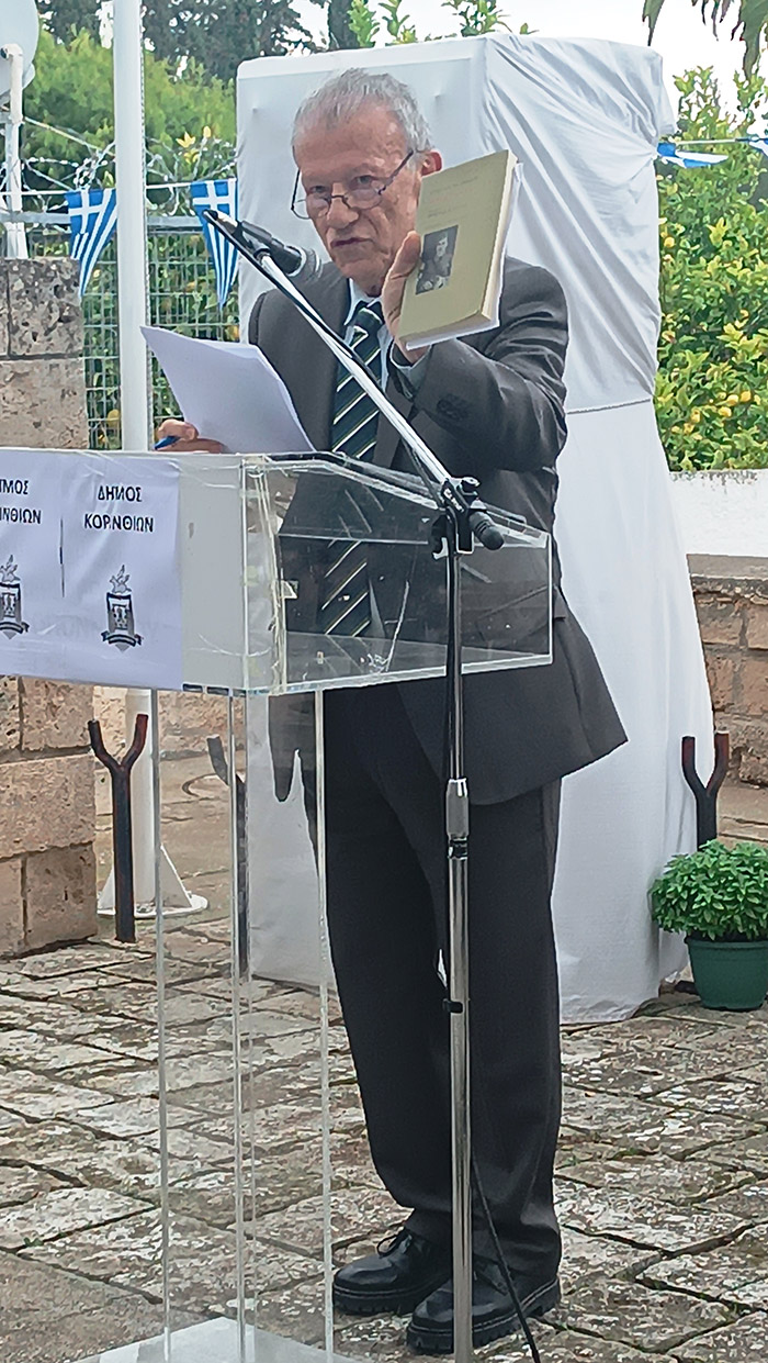 Τα ίδια ονόματα γράφτηκαν στη μαρμάρινη στήλη μνήμης που τοποθετήθηκε στη μικρή πλατεία, στο κέντρο του χωριού και της οποίας έγιναν τα αποκαλυπτήρια από τον Δήμαρχο Κορινθίων κ. Σταυρέλη, κατά τη διάρκεια της τελετής.