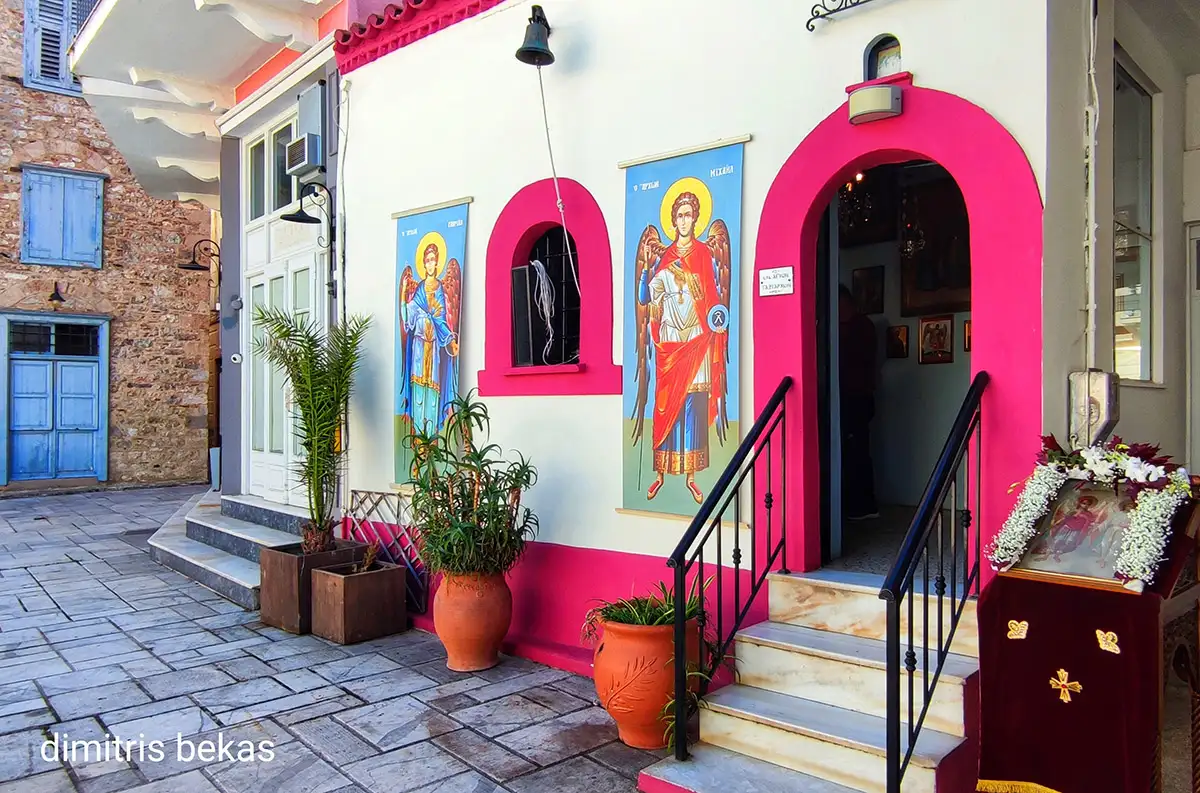 Με ευλάβεια και συμμετοχή πλήθους πιστών πραγματοποιήθηκε το απόγευμα της Παρασκευής 7 Νοεμβρίου ο Πανηγυρικός Εσπερινός στον Ιερό Ναό Παμμεγίστων Ταξιαρχών Μιχαήλ και Γαβριήλ στο Ναύπλιο, που βρίσκεται δίπλα από το Πολεμικό Μουσείο, στην καρδιά της παλιάς πόλης.
