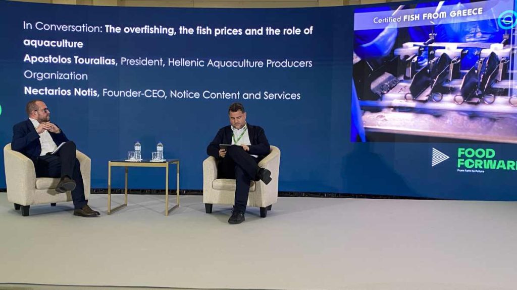 Στο 1ο Συνέδριο Food Forward from Farm to Table, η υπεραλίευση, οι τιμές των ψαριών εκτροφής και ο ρόλος της ελληνικής ιχθυοκαλλιέργειας, συζητήθηκαν από τον Απόστολο Τουραλιά, Πρόεδρο ΕΛΟΠΥ, και το Νεκτάριο Νώτη, CEO Notice Content & Services, εμπνευστή του Συνεδρίου. Η ΕΛΟΠΥ, προσέφερε δείπνο με φρέσκα ελληνικά ψάρια εκτροφής Fish from Greece, μαγειρεμένα με Ασιατικό twist.