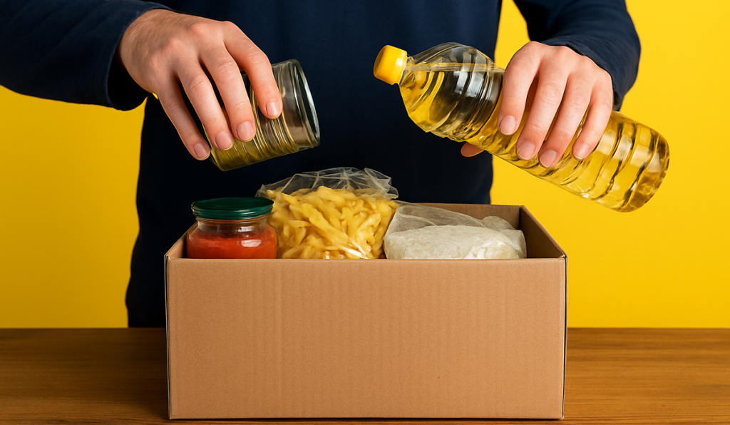 - Βασικά είδη διατροφής μακράς διαρκείας όπως ρύζι, όσπρια, ζυμαρικά, ελαιόλαδο, σπορέλαιο, γάλα εβαπορέ, αλεύρι, ντοματοχυμό, καφέ, ζάχαρη, τυποποιημένα τσουρέκια, αλεύρι, είδη πρωινού, γλυκά, αλάτι, πιπέρι, ξύδι κ.α.