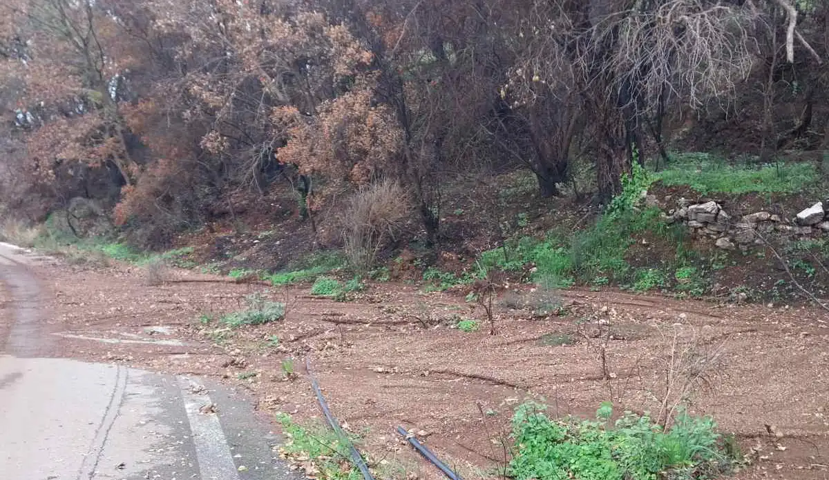 Η φωτιά άφησε πίσω της μεγάλα τμήματα γης απογυμνωμένα, με το έδαφος να έχει χάσει τη συνοχή του.