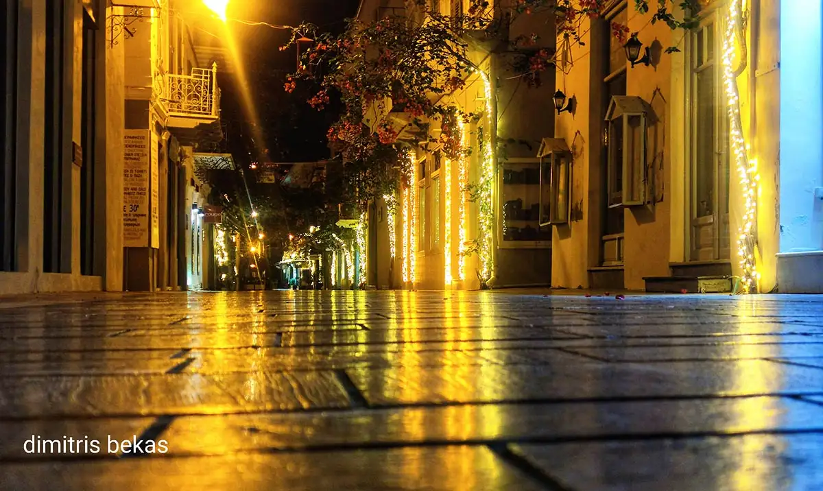 Τα στενά σοκάκια της παλιάς πόλης, στολισμένα λιτά αλλά κομψά, μεταφέρουν τον επισκέπτη σε μια άλλη εποχή. Η μυρωδιά του ζεστού καφέ, οι βιτρίνες που «χαμογελούν» με στολίδια και τα φωτάκια που τρεμοπαίζουν πάνω από τα καλντερίμια δημιουργούν την τέλεια χριστουγεννιάτικη βόλτα.