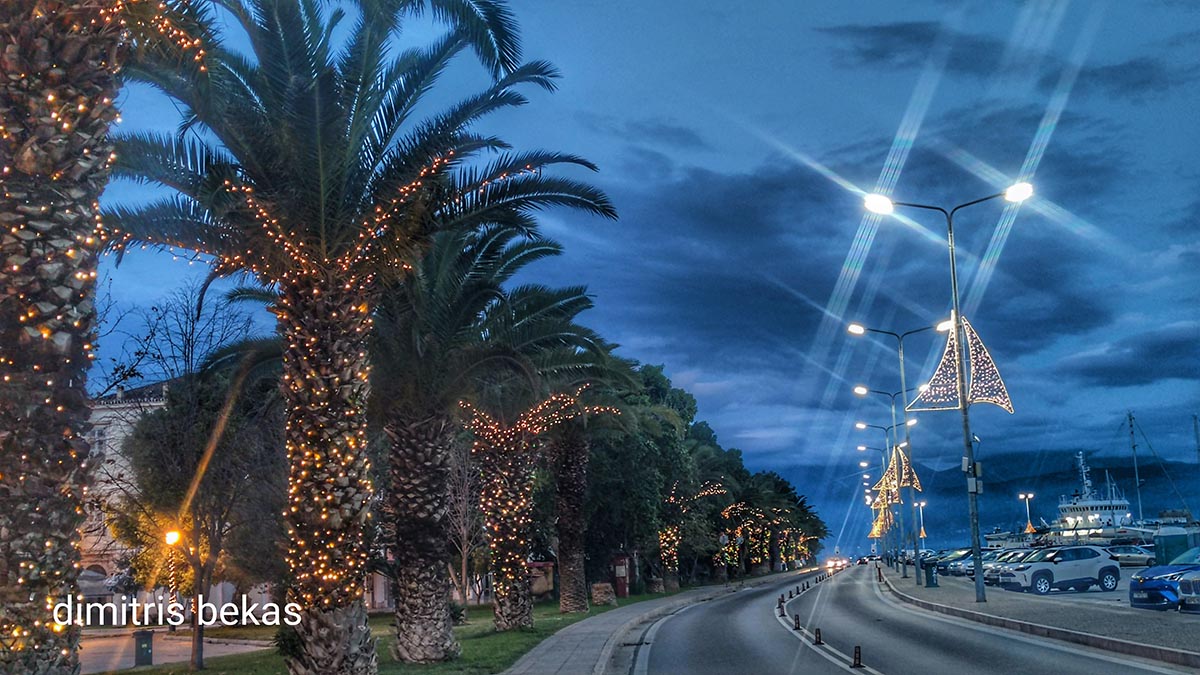 Στο λιμάνι, η εικόνα είναι εξίσου μαγευτική. Οι αντανακλάσεις από τα χριστουγεννιάτικα φώτα χορεύουν στο νερό, ενώ από μακριά το φωτισμένο Μπούρτζι συμπληρώνει το σκηνικό σαν φυσικό χριστουγεννιάτικο στολίδι της πόλης. Οι δρόμοι γύρω από τον κυκλικό κόμβο λάμπουν από τα φωτεινά καμπανάκια και τα δέντρα, με φόντο τον Αναπλιώτικο ουρανό που χαρίζει μοναδικές αποχρώσεις.