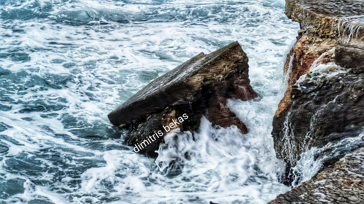 Όπως αποτυπώνεται στον φωτογραφικό φακό του Δημήτρη Μπέκα, ένα μεγάλο βραχώδες και τσιμεντένιο τμήμα της προκυμαίας δεν άντεξε τη μανία των κυμάτων, αποκολλήθηκε και κατέληξε μέσα στη θάλασσα.