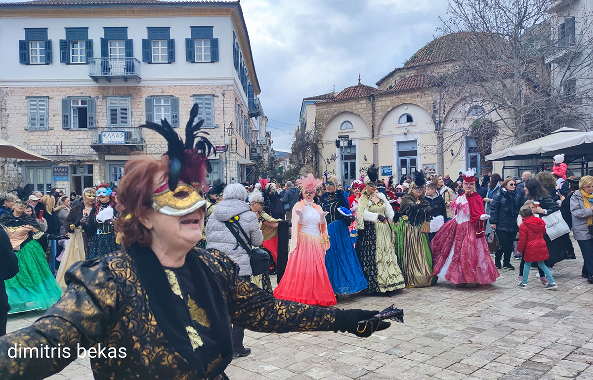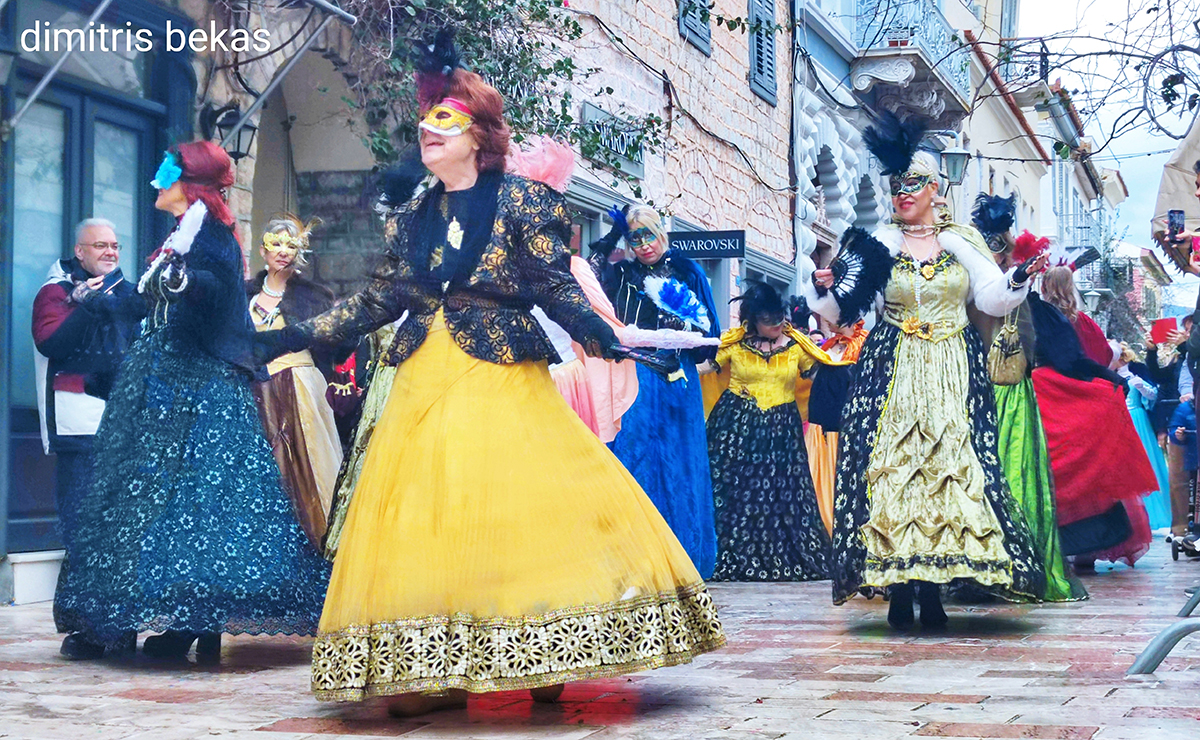 Η αισθητική του Καρναβαλιού του Ναυπλίου θύμισε για άλλη μια χρονιά εποχές Ενετοκρατίας. Μεγαλοπρεπείς φιγούρες με βελούδινες κάπες και μάσκες που έκρυβαν τα χαρακτηριστικά τους, πόζαραν περήφανα μπροστά από τα νερά του Αργολικού κόλπου, έχοντας ως φόντο το ιστορικό Μπούρτζι. Σε κεντρικά σημεία της πόλης, οι ομάδες αυτές μαγνήτισαν τα βλέμματα με τις ενδυματολογικές τους επιλογές σε έντονες αποχρώσεις του χρυσού, του κόκκινου, του μπλε και του πράσινου.
