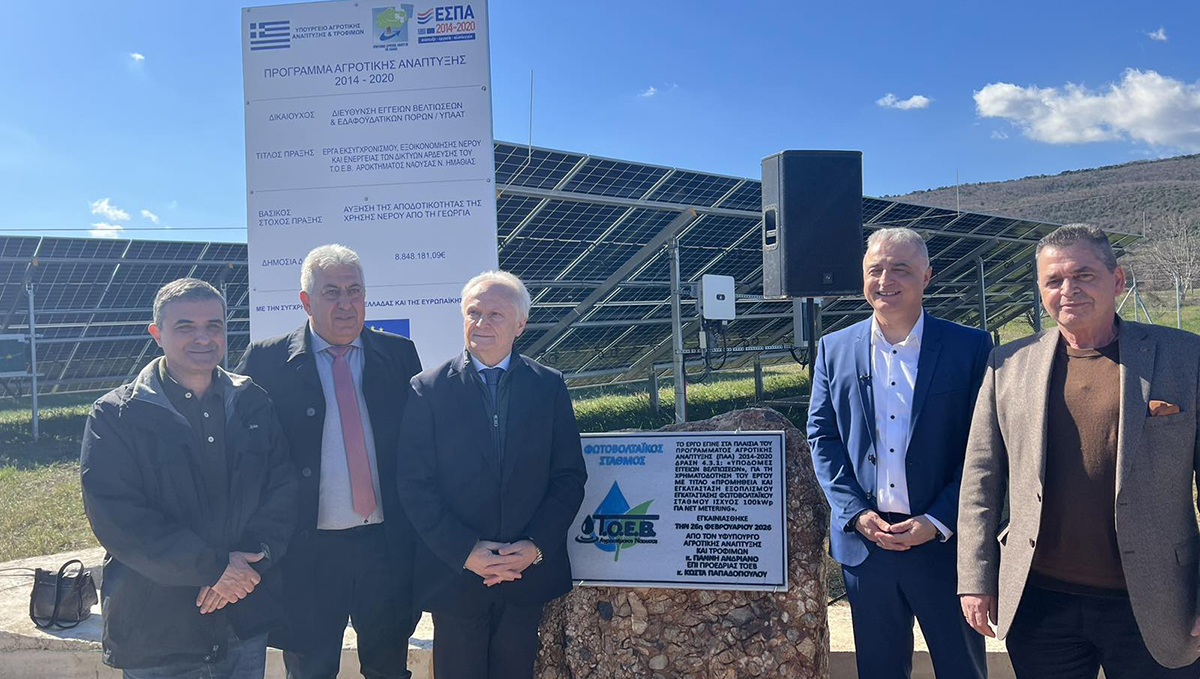 Το πιο ηχηρό μήνυμα της επίσκεψης δόθηκε με τα εγκαίνια του νέου φωτοβολταϊκού σταθμού του ΤΟΕΒ Αγροκτήματος Νάουσας. Πρόκειται για ένα έργο πνοής, το οποίο αναμένεται να αλλάξει τα δεδομένα για τους παραγωγούς της περιοχής.