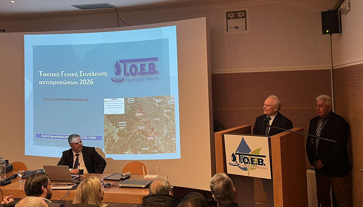 Κατά τη διάρκεια της Γενικής Συνέλευσης του ΤΟΕΒ Νάουσας, όπου και παρευρέθηκε, ο κ. Ανδριανός εξήρε τη διοίκηση του Οργανισμού, υπογραμμίζοντας πως η χρηστή και δυναμική διαχείριση αποδεικνύει ότι τα διαθέσιμα χρηματοδοτικά εργαλεία μπορούν να πιάσουν τόπο, αναβαθμίζοντας την ποιότητα της πρωτογενούς παραγωγής.