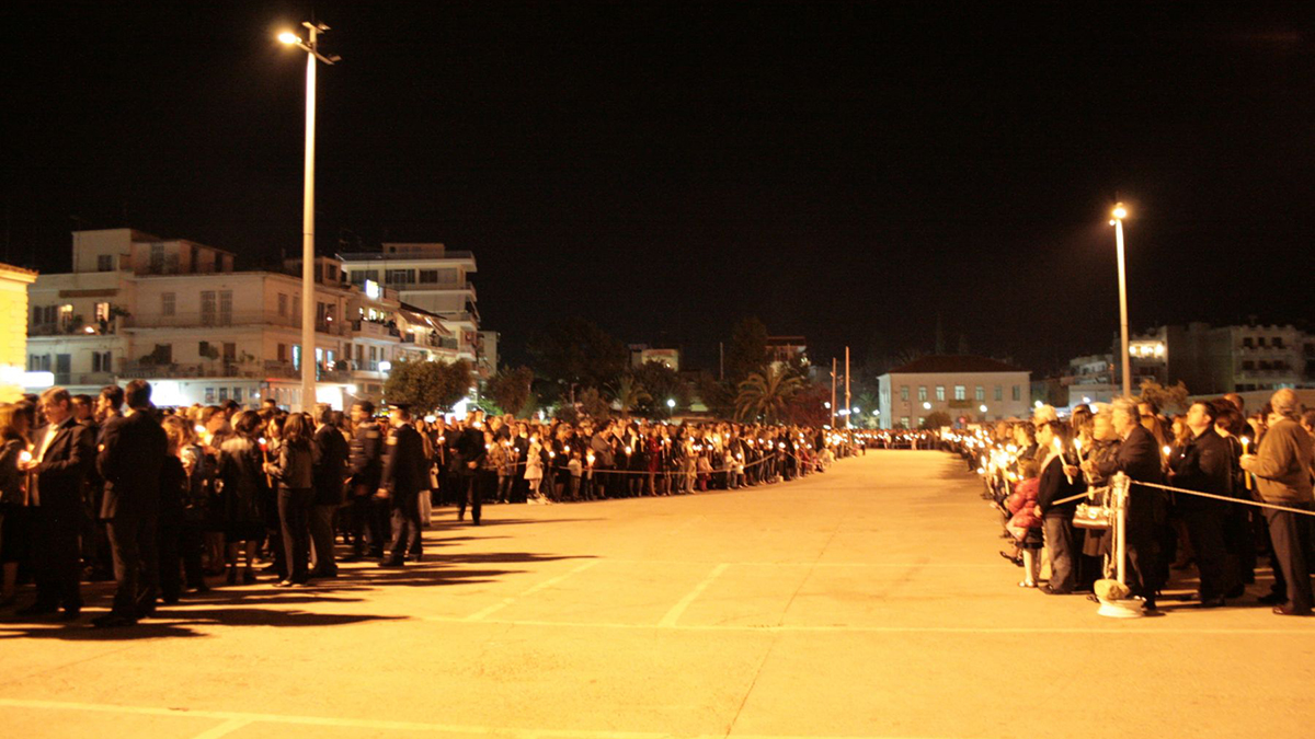 Το κέντρο της πόλης και συγκεκριμένα η πλατεία Δημοκρατίας (γνωστή και ως πλατεία Λαϊκής Αγοράς) πλημμύρισε από κόσμο. Ντόπιοι αλλά και πλήθος επισκεπτών δημιούργησαν το αδιαχώρητο, περιμένοντας με κατάνυξη την άφιξη των λιτανευτικών πομπών. Το σκοτάδι της νύχτας έσπασε από τα χιλιάδες αναμμένα κεριά των πιστών, δημιουργώντας μια ατμόσφαιρα που προκαλούσε ρίγη συγκίνησης.