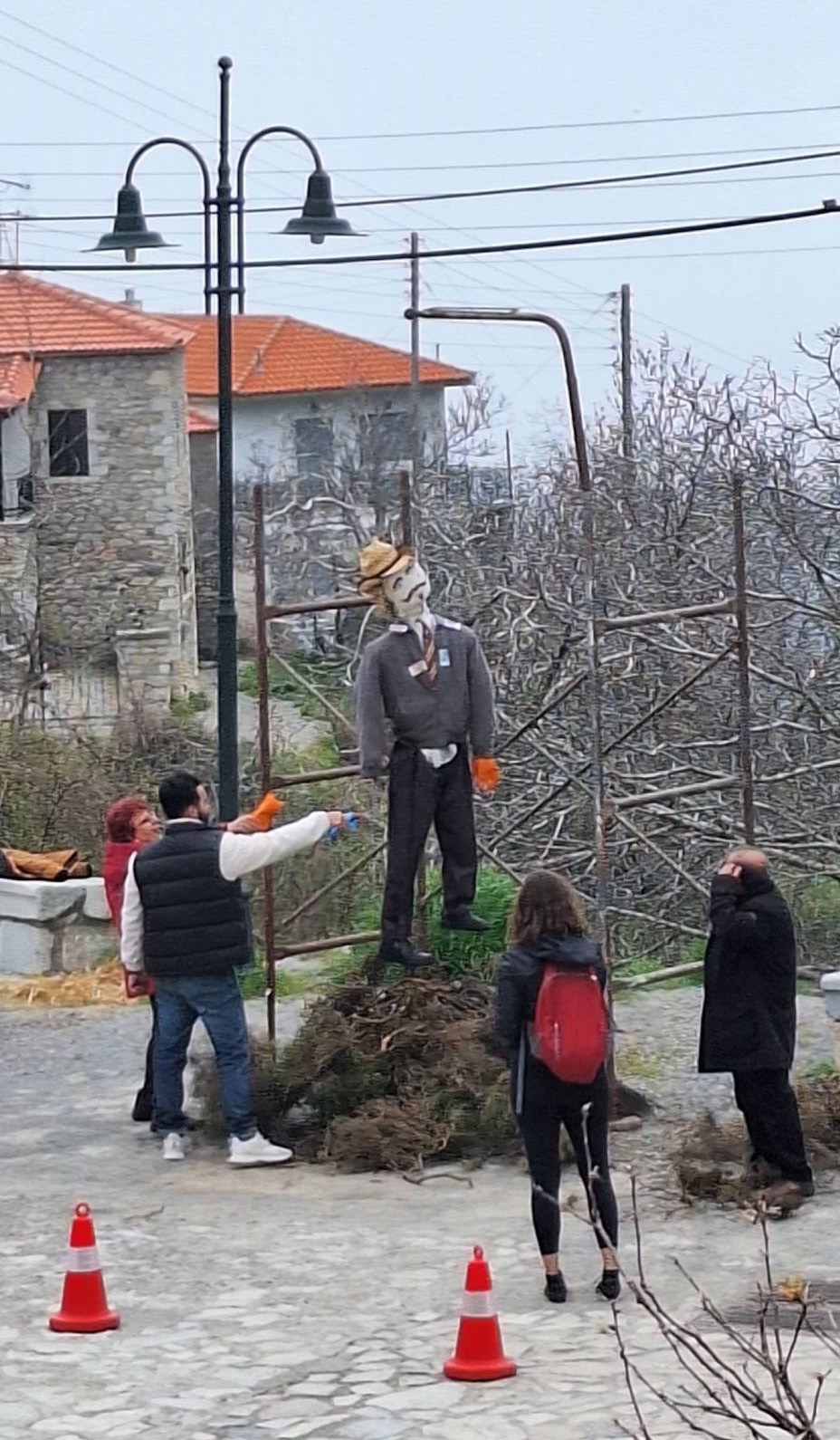 Στις 5 το απόγευμα, η στιγμή της κορύφωσης έφτασε. Το ομοίωμα, έτοιμο και στημένο, πήρε φωτιά, δημιουργώντας ένα εντυπωσιακό θέαμα. Οι φλόγες, ο καπνός και η ένταση της στιγμής αιχμαλώτισαν την προσοχή των παρευρισκομένων, που παρακολουθούσαν με δέος την αναπαράσταση.