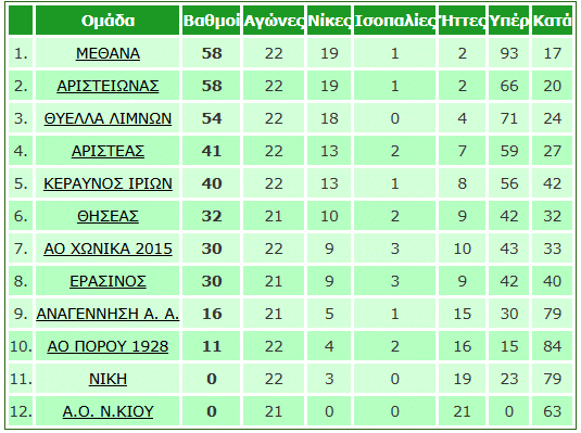 - Μέθανα-Αριστέας Άργους 3-0